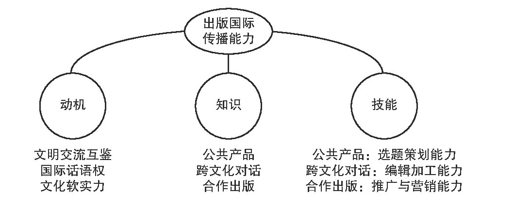 出版国际传播同样包括编码与解码过程,这内在地规定了出版国际传播能力的要素构成。出版在国际传播中是信息编码者,要依据目标受众文化背景和认知方式,对内容进行有效编码,如选择合适主题、叙事结构和表现形式;出版国际传播要关注受众解码情况,通过市场调研、读者反馈等了解受众对内容的理解和接受程度,据此调整传播策略,提高传播效果。就概念界定而言,出版国际传播能力与文化间传播能力一样,都是由知识(传播所必需的信息和行为的认知和理解)、动机(传播行为连带的一系列情感、意图、需求和内在动力)、技能(实际传播语境下有效和适宜的行为)三大要素构成且相辅相成。[3]目前,学界普遍讨论的能力要素是技能,这与出版业的实践属性有着密切关联。为了与既有研究成果有更好的对话空间,本文所指涉的核心要素仍然是技能,故而出版国际传播能力主要是一种对外传播的业务技能,只不过其传播形式限定在了出版这一具体传媒实践中。当下出版国际传播能力建设的动机已成为国家战略传播的重要组成部分之一,在提升实践层面的技能时,知识层面的深入认知是其基础前提。在既有出版国际传播能力界定的业务范畴中,可以再讨论的是“编辑策划与创新能力”和“版权交易能力”的交叉性问题,以及“受众服务能力”在对外传播之中的操作性问题。就前者而言,版权交易在业务实践中通常处于上游并与选题策划存在交叉,是选题策划环节的重要内容。就“受众服务能力”而言,当下我国的整体国际传播实践在受众服务领域有待优化;出版实践作为一种以知识传播为主体的大众传播行为,在对异域读者进行传播时,其受众服务能力同样会受到语言转换和文化差异等因素的影响,面临着各种困难;因此在提升出版国际传播能力时,该内容维度的实际操作性在目前的出版环境下仍有一定难度。为此,笔者更倾向于将“出版国际传播能力”的主体维度与出版业务流程对标,将其具体化为选题策划能力、编辑加工能力、推广与营销能力三个方面的知识与技能。