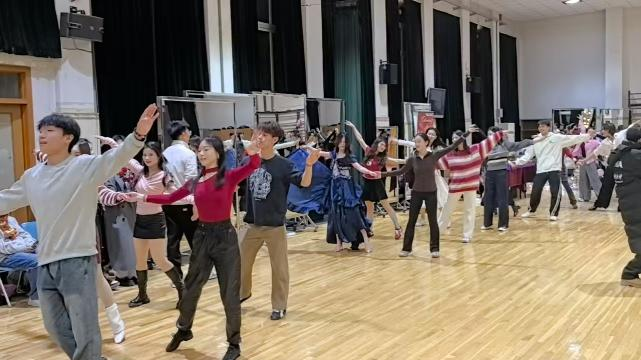 开场舞表演,如星火初燃,瞬间点燃全场热情;破冰游戏环节中,简单的互动让来自11所高校的学子迅速拉近距离,陌生感在欢声笑语里悄然消融。宫廷舞教学环节将优雅与礼仪融入舞蹈之中,在古典乐声中,学子们体验的不只是舞蹈,更是一份穿越时空的仪式感与优雅气质。北京航空航天大学踢踏舞团带来的表演节奏明快、步伐铿锵,如冬日里跃动的火焰,瞬间引燃全场热情。尾声的排排舞环节将整个舞会气氛推至顶峰,这一刻,学子们舞动的不只是脚步,更是青春的热情与活力。
