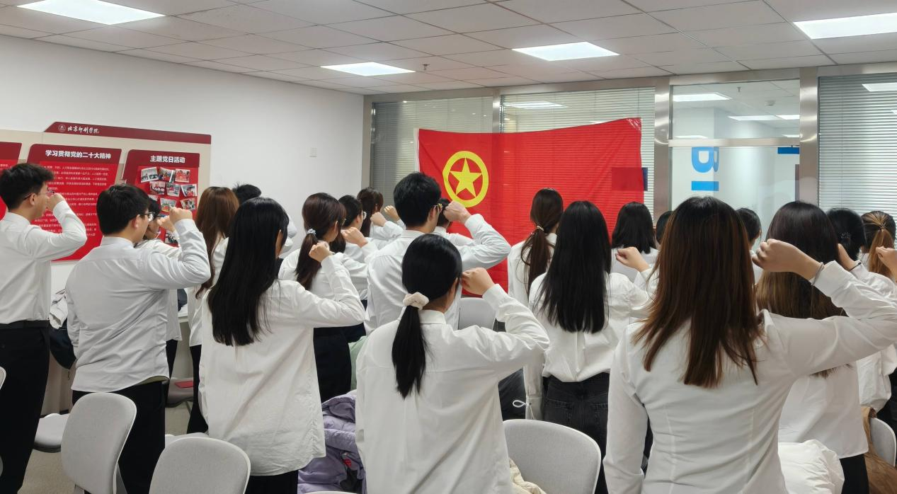 在团旗下,全体新团员举起右拳,以青春的名义庄严宣誓。铿锵有力的誓言,是他们对组织的坚定承诺,更是将个人理想融入出版强国事业的决心。