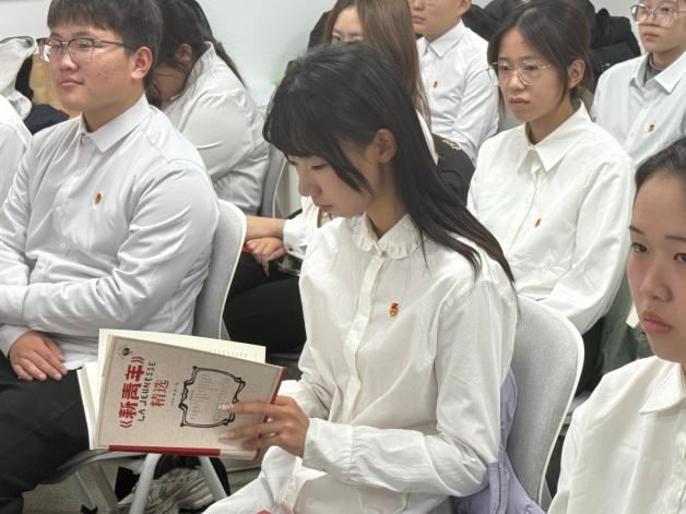 “以青春之我,创建青春之家庭,青春之国家,青春之民族……”书中字字千钧,激荡人心。历史在文字间苏醒,精神在交流中传承,出版学子在红色经典中筑牢信仰之基。