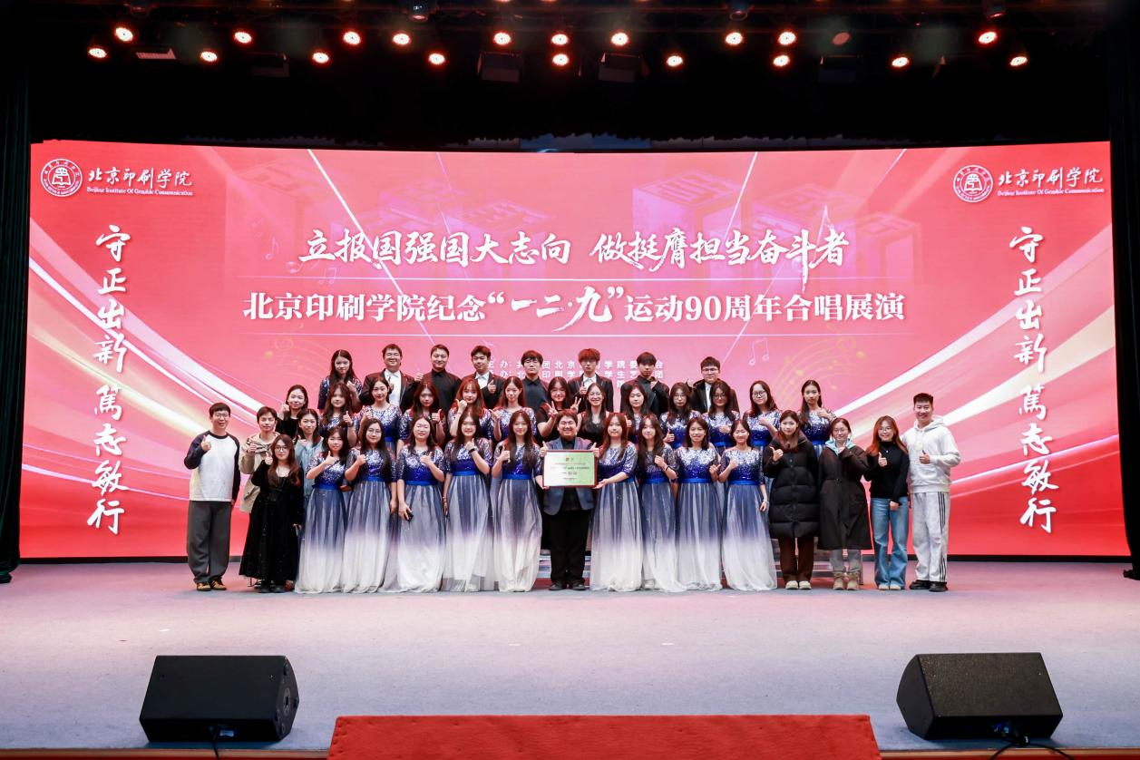 12月初,在“立报国强国大志向 做挺膺担当奋斗者”北京印刷学院纪念“一二•九”运动90周年合唱展演活动中,出版学院合唱队通过一个多月的辛苦训练,深情演绎《红河谷》与《南屏晚钟》两首经典作品,最终荣获一等奖。同学们用和谐动人的歌声,既表达了对历史的缅怀,也抒发了对美好时代的礼赞,展现了出版青年出色的艺术素养和团结向上的精神风貌。