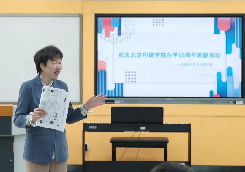 23级研究生出版1班为纪念北京印刷学院办学65周年举办了一场班级活动。活动于2023年10月25日下午2点至4点在本校智慧教室N1A-315举行。北京印刷学院副院长兼出版学院执行院长陈丹、出版学院副书记李柴非、辅导员徐乃瑞老师和班主任衣彩天老师出席了本次活动。活动由班主任衣彩天老师和王三叶同学主持。